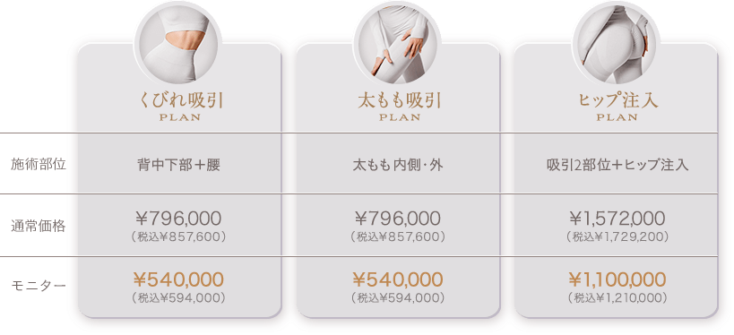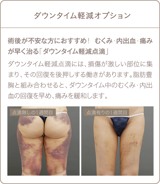 | 特典2:ダウンタイム軽減点滴 | 3部位以上ご成約で無 料 |