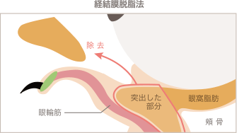経結膜脱脂法を行います。これによって目の下に影ができなくなり、クマの解消が期待できます。