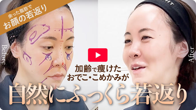 どうしても老化という現象は避けられませんので、皮膚は多少垂れてきます。ただし注入した脂肪の重みで垂れるということはありません。むしろ肌が張ってたるみやシワの改善効果が期待できます。