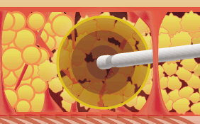 通常の脂肪吸引は、周辺の繊維組織と一緒に脂肪組織を「削り取る」イメージですが、ベイザー脂肪吸引は、脂肪を液状にしてから「吸い出す」イメージです。 -
