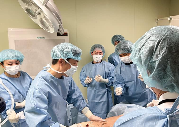 - 専門は脂肪吸引と脂肪注入。これだけで年間2千例を数えます。脂肪に関する施術に特化することで、この分野に関する知見を深め、より高度で新しい技術の獲得を目指します。
