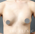 カプセル拘縮のため、シリコンバッグが球状に変形してしまい、かつバストの中央に寄っているので、非常に不自然な形になっていました。施術ではバッグを除去した後、脂肪注入豊胸によってバランスが整った自然なバストに修正しています。カプセル拘縮は10人に1人の割合で見られる症状なので、もし手触りや形に違和感を感じたら早めにご相談ください。