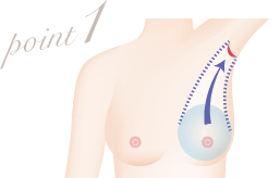 他院では、取り出しやすいという理由から乳輪やアンダーバストにメスを入れて抜去するところが多いですが、これではバストに傷跡が残ってしまいます。脇だと傷口がシワに沿って、目立つことなく仕上げられる利点があるので、当院ではその方法を採用。技術が必要な箇所ですが、症例数を多く持つTHE CLINICでは可能な施術です。