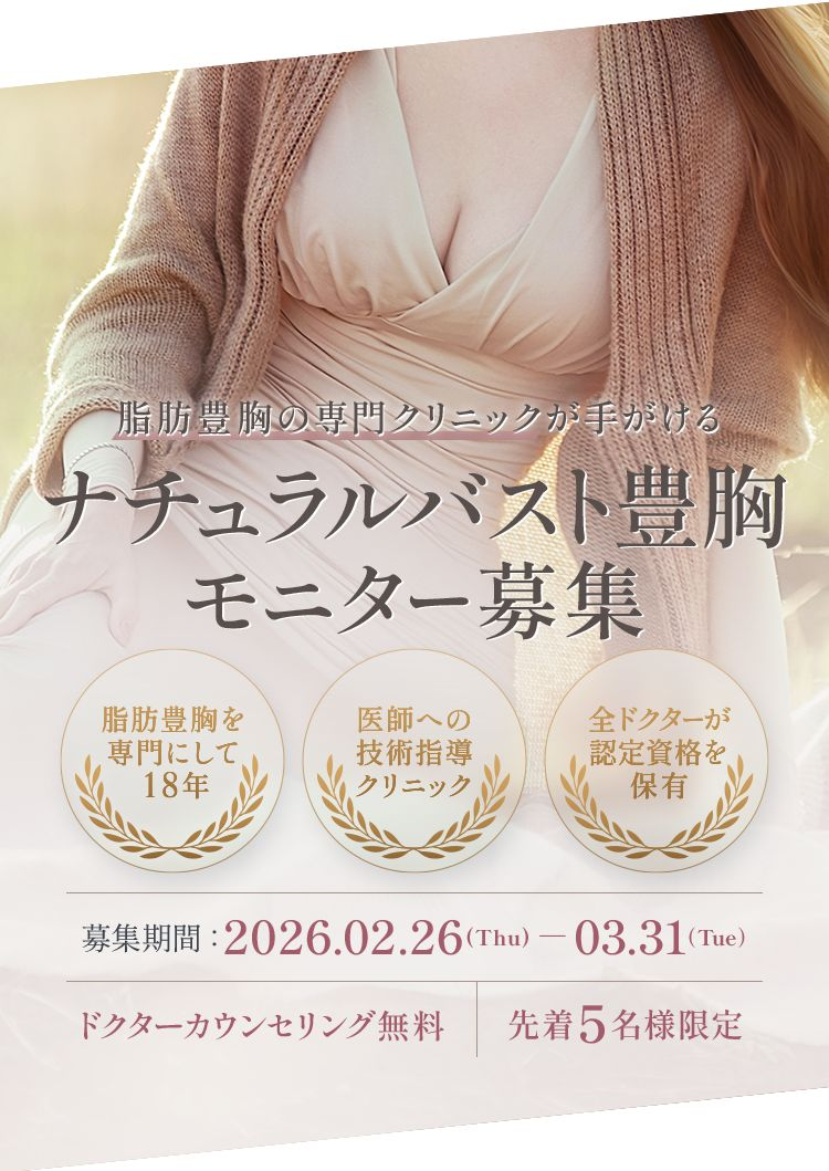 施術概要:太もも、腹部などの皮下脂肪を採取し、そこから老化細胞や血液等の不純物を特許技術の遠心濾過で除去。これをバストの皮下に注入する。