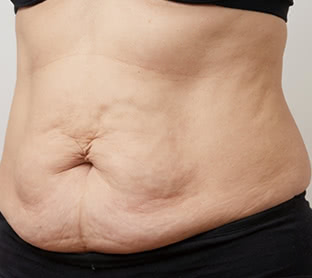脂肪の重みから下腹部にたるみが顕著なケースでしたが、皮膚の収縮を促しつつ脂肪吸引することで、余った皮膚を目立たせずにお腹のたるみが解消しました。 -