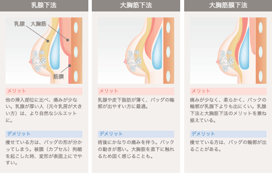 もちろん、施術を受ける方の体型やご希望に合わせて、バッグを入れる位置や手法を工夫することは可能です。例えば、大胸筋の下に挿入する大胸筋下法や、バッグ上部は大胸筋で覆い下部は乳腺下に 配置するデュアルプレーン法といった選択肢があります。