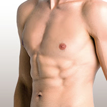 ①脂肪吸引と脂肪注入:腰と太ももから脂肪を吸引し、大胸筋に注入。これにより胸に自然な膨らみをつくり、男性らしい胸筋を形成します。