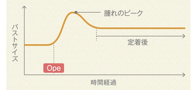 胸の腫れは、脂肪が定着するにつれて徐々に落ち着きますが、腫れが引くタイミングでバストサイズが少しダウンすることがあります。このため、「脂肪注入では大きくならない」と誤解されることがありますが、実際には定着した脂肪の分だけしっかりとバストアップが得られています。