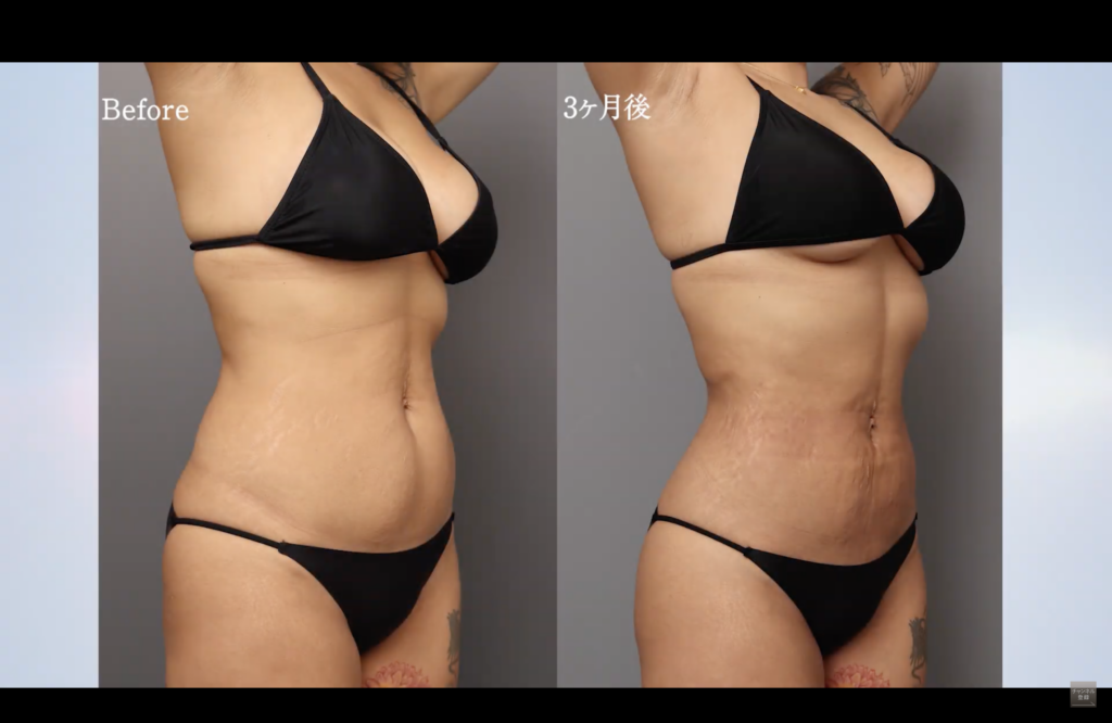 具体的には、腰回りの脂肪を取り除く際、ベイザー脂肪吸引で表層の脂肪を吸引する「スーパーフィッシャルリポサクション」という技術で、たるまないよう慎重に気をつけながら徹底的に吸引しました。